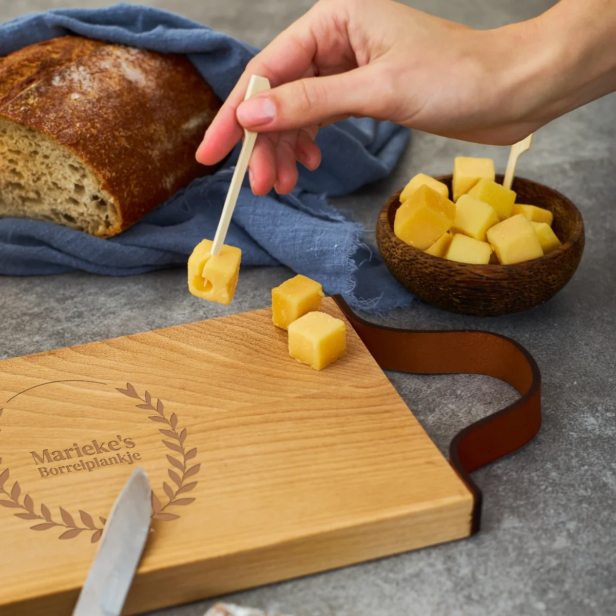 Net als onze andere houten borrelplanken is deze serveerplank niet geschikt voor in de vaatwasser. We raden daarom aan deze af te nemen met een vochtige doek wanneer dat nodig is. Liever een ander model? Bekijk ons ruime assortiment serveer- en snijplanken en laat een andere borrelplank graveren.